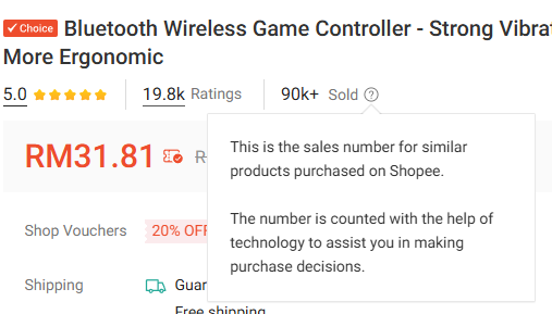 If you’re browsing Shopee on a PC and you see a question mark icon next to the “sold” count, hover your mouse over it. If the message below appears: