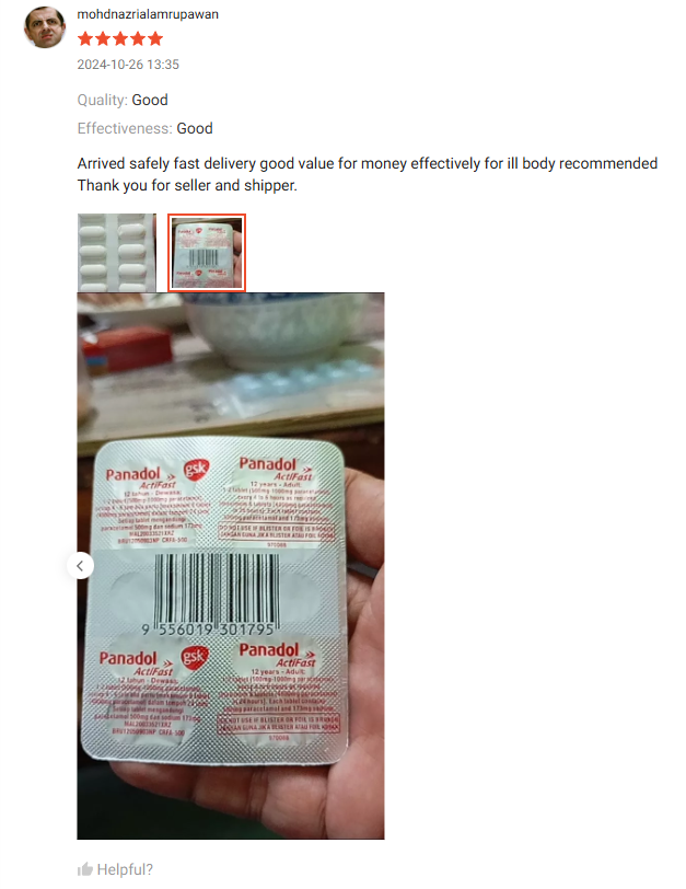 A seller lists Panadol Actifast 10 tablets at a very cheap price.